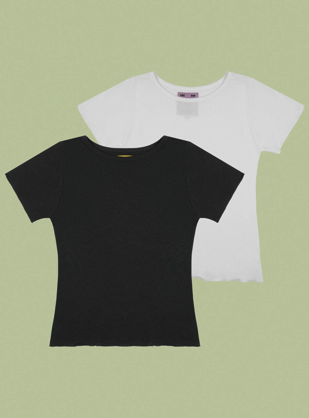 The Go-To Two-pack comes with 2 cropped tees (1) natural white and (1) black. Made of super soft cotton. fit is true to size.