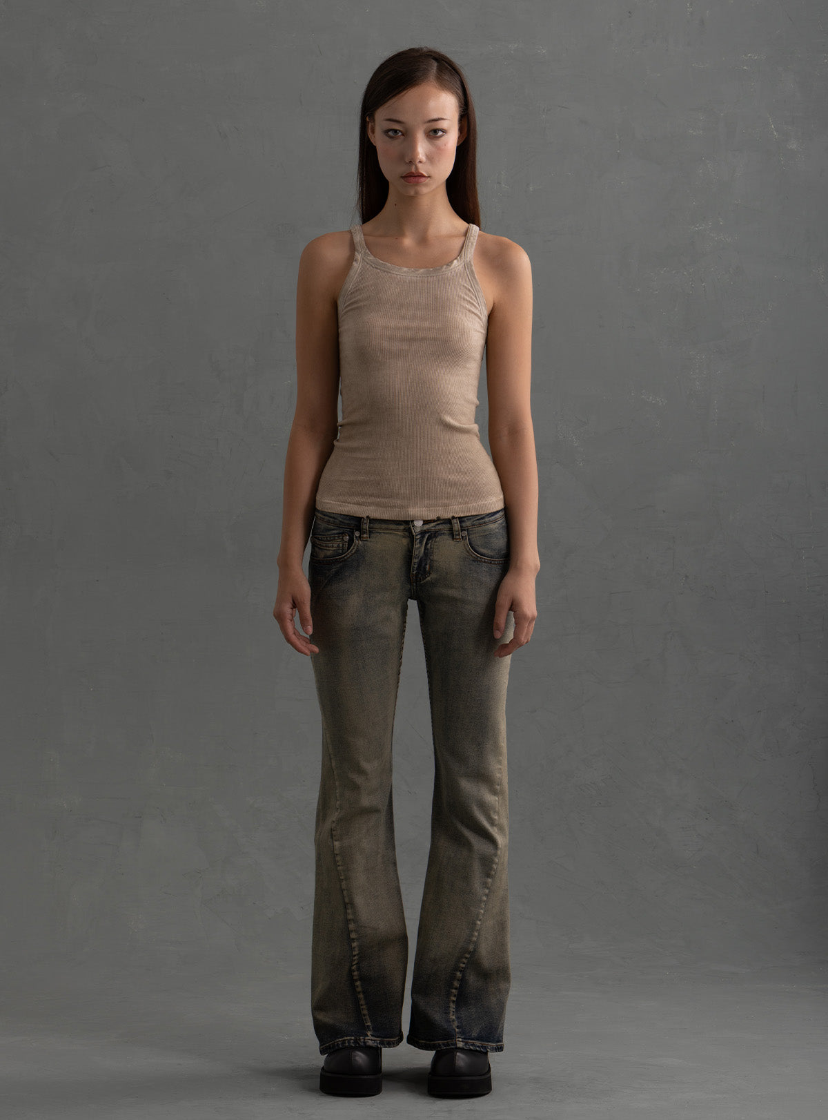 Super soft ribbed tank hand dyed in LA with an oil wash for a mechanic-chic look.